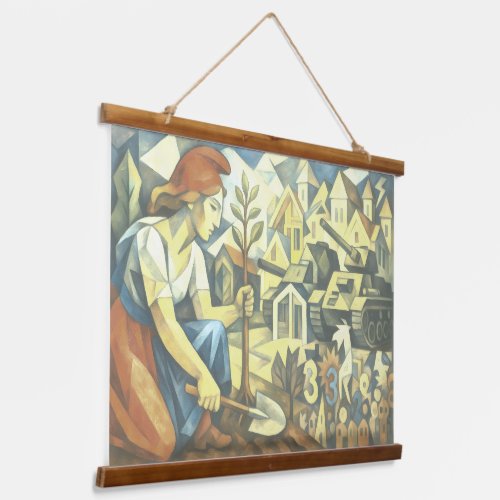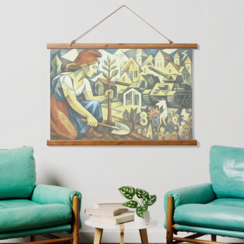 Elle met en scène Marianne, figure intemporelle de la liberté française, qui plante un arbre – symbole de vie et de reconstruction – face à un char menaçant un village et ses habitants.